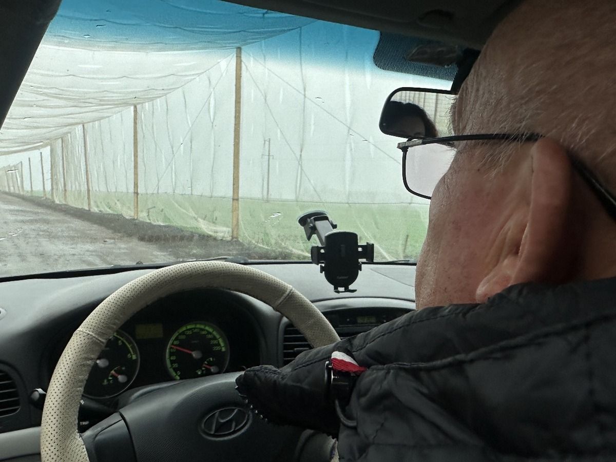 Повертаючись назад, він в’їхав у зону, де дорога накрита сіткою – своєрідний тунель, який має захищати від дронів. Десь 10-15 хвилин їзди під цим захистом давали відчуття безпеки, хоч і відносної.
