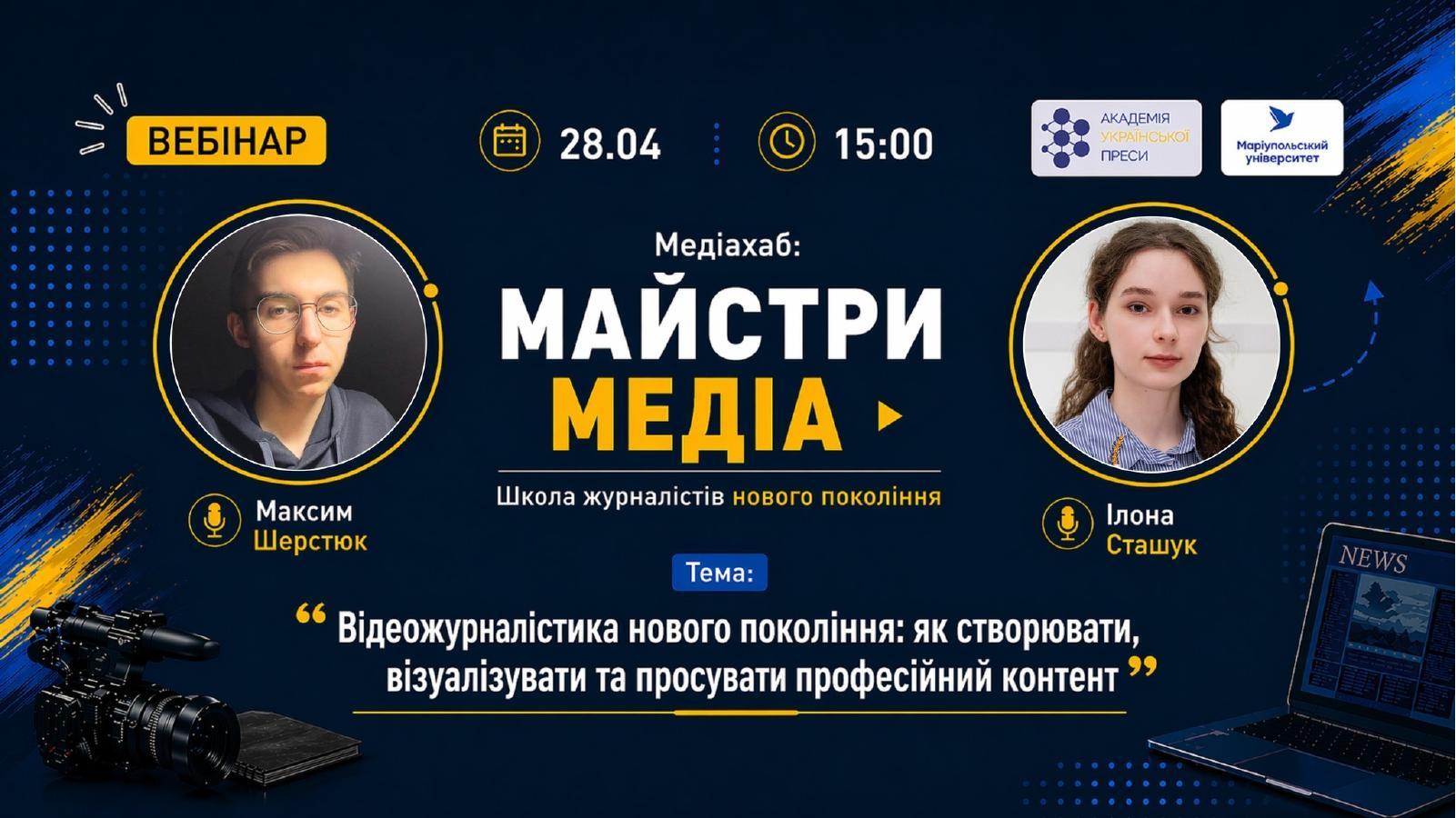 Новий проєкт «Медіахаб: майстри медіа – школа журналістів нового покоління» відкрили 28 квітня Академія української преси спільно з кафедрою соціальних комунікацій Маріупольського державного університету. Перший вебінар присвятили відеожурналістиці. Студенти-практики Максим Шерстюк та Ілона Сташук поділилися практичними порадами, які стануть у пригоді кожному, хто прагне робити сильні відеоісторії – від регіональної редакції до авторського блогу. Зібрали найцінніше з їхніх виступів.