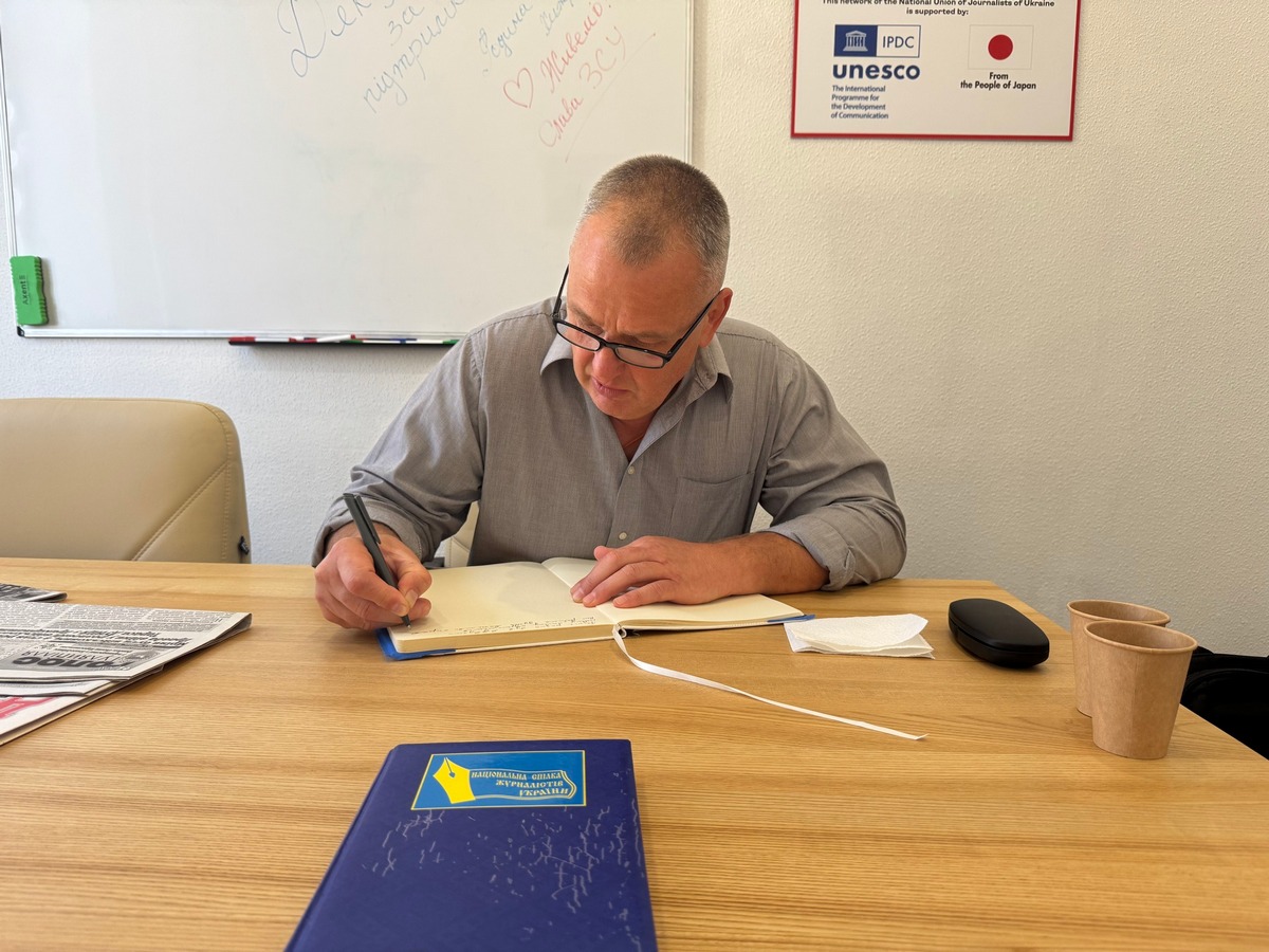 Владислав Єсипенко під час відвідання офісу НСЖУ. Фото: НСЖУ