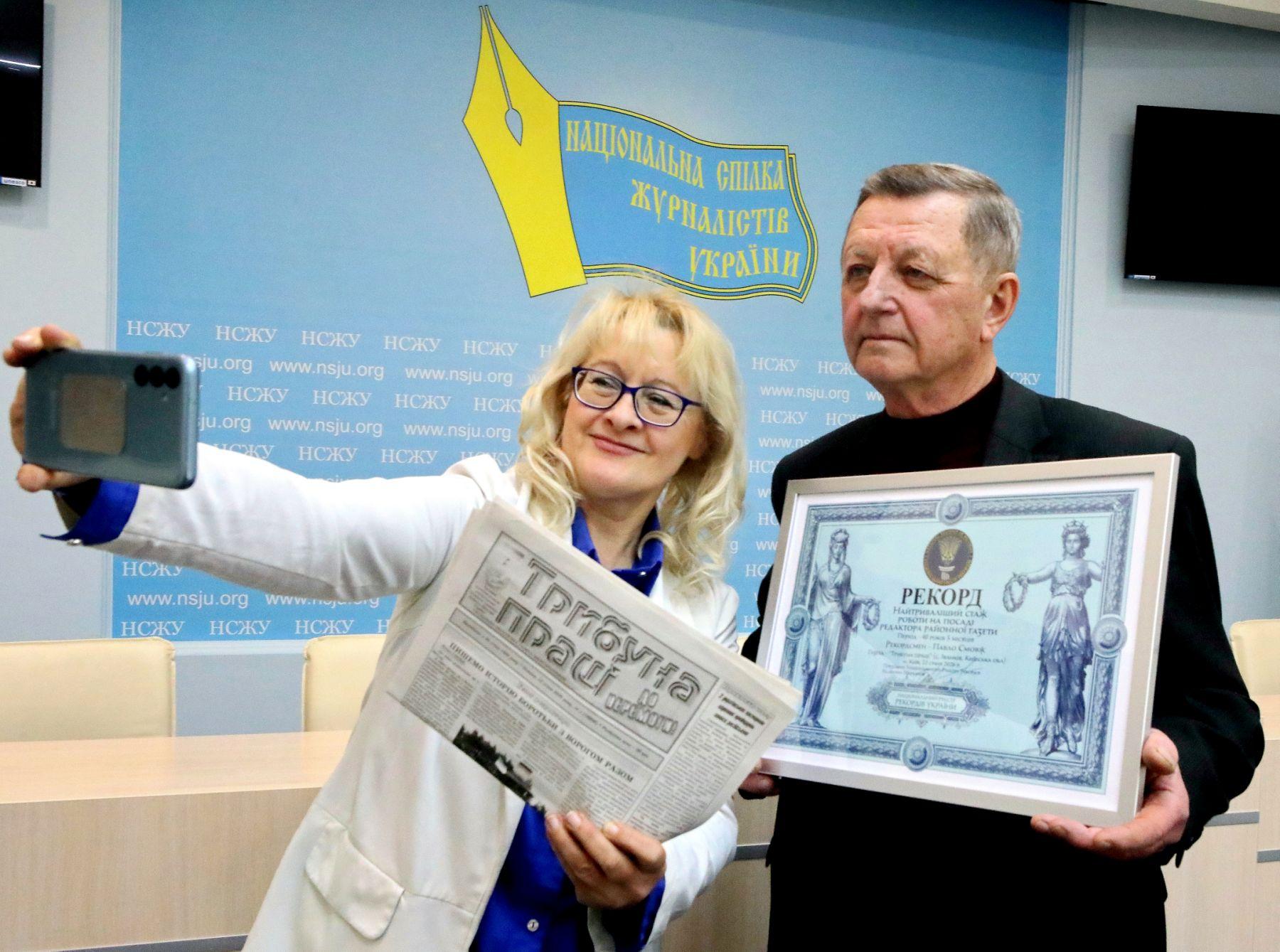 Журналістський рекорд редактора Іванківської районної газети «Трибуна праці» Павла Смовжа оголосили в Центральному офісі НСЖУ.  Це досягнення – найтриваліший безперервний етап роботи на посаді редактора районної газети в країні – внесли до Книги рекордів України.