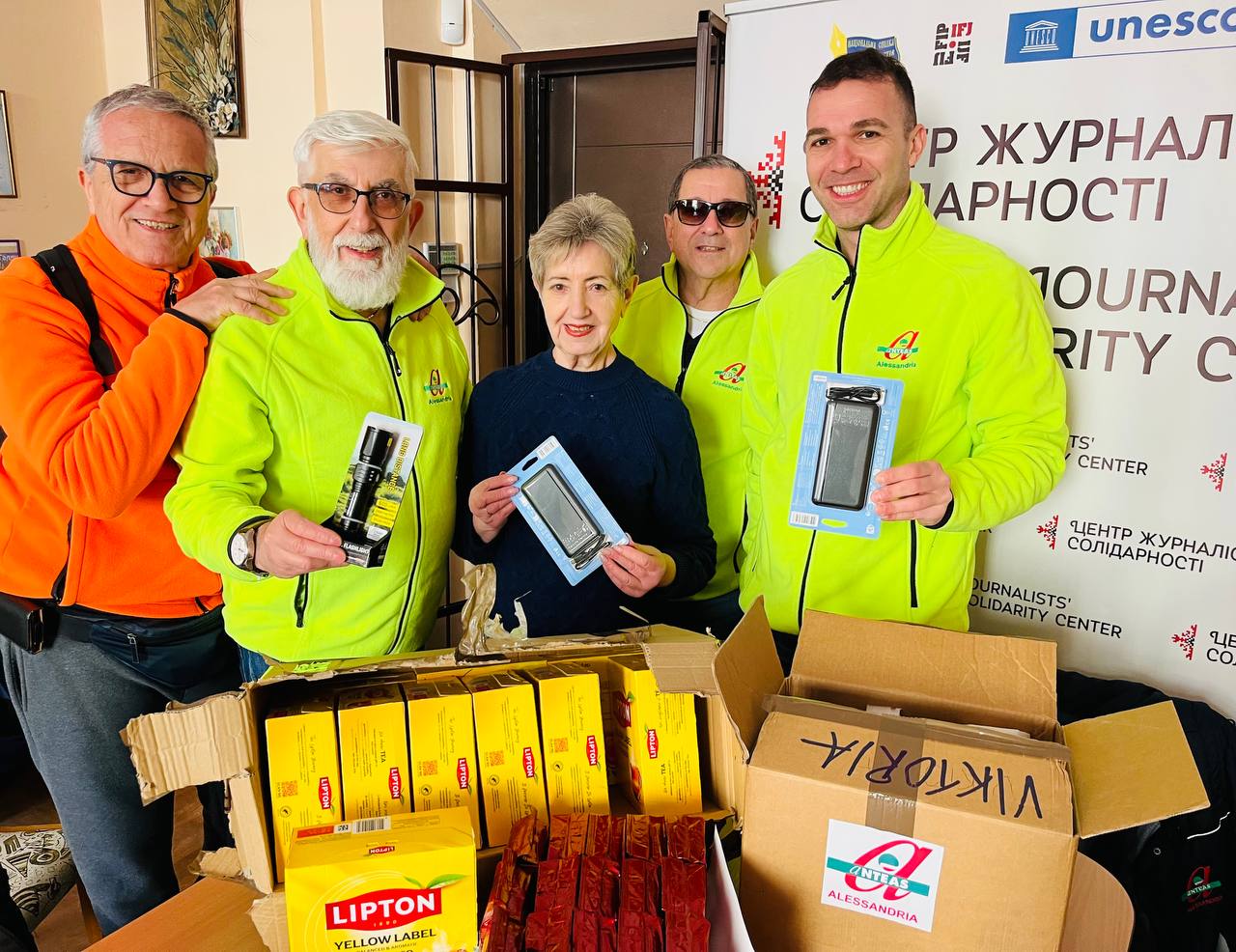 Президент італійської волонтерської асоціації передав адресну допомогу для медійників підшефних Центрові прифронтових та прикордонних областей:  павербанки, ліхтарики, каву, чай.