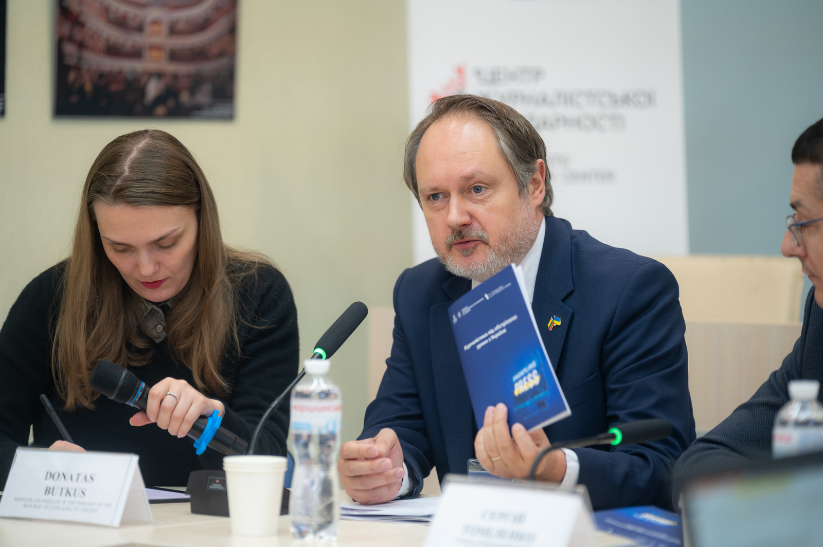 Донатас Буткус додав: вражений тим, в яких умовах працюють українські журналісти. Вони змушені носити бронежилети, але не можуть одягати ті, що мають напис «Преса», бо росія свідомо цілиться в представників медіа.