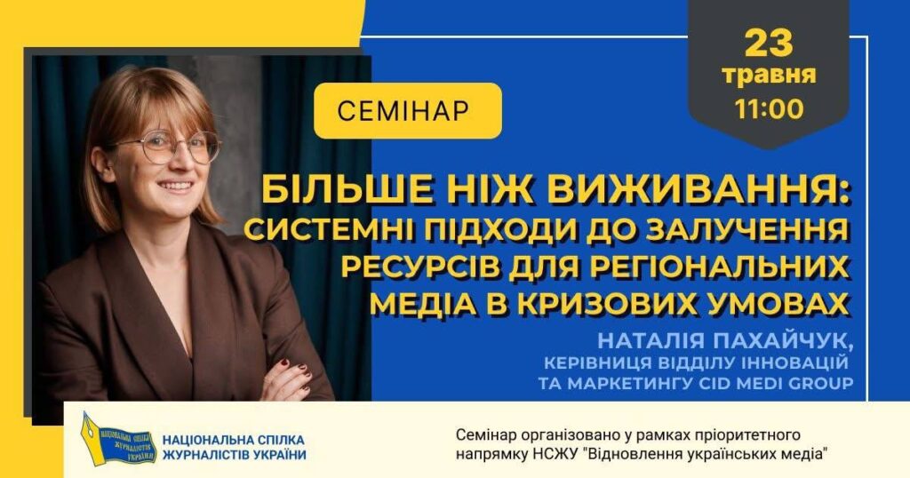 Захід відбувся 23 травня у рамках пріоритетного напрямку Національної спілки журналістів України з відновлення українських медіа. Він є важливою складовою системних зусиль Спілки із забезпечення економічної стійкості медіа під час війни.