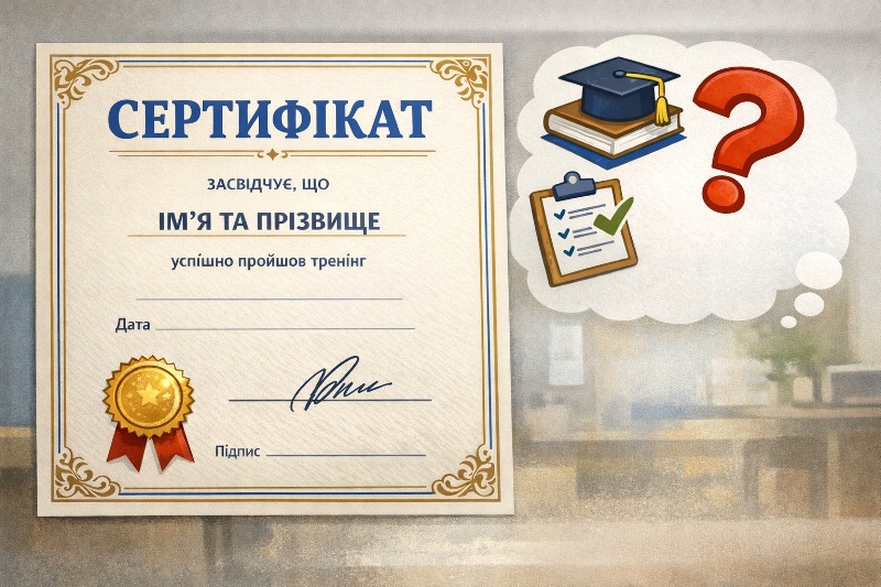 «Чи може медіаорганізація видавати сертифікати учасникам тренінгу (наприклад, з медіаграмотності, який проводить сертифікований медіааналітик)? Які вимоги до таких сертифікатів і чи мають вони офіційний статус?»