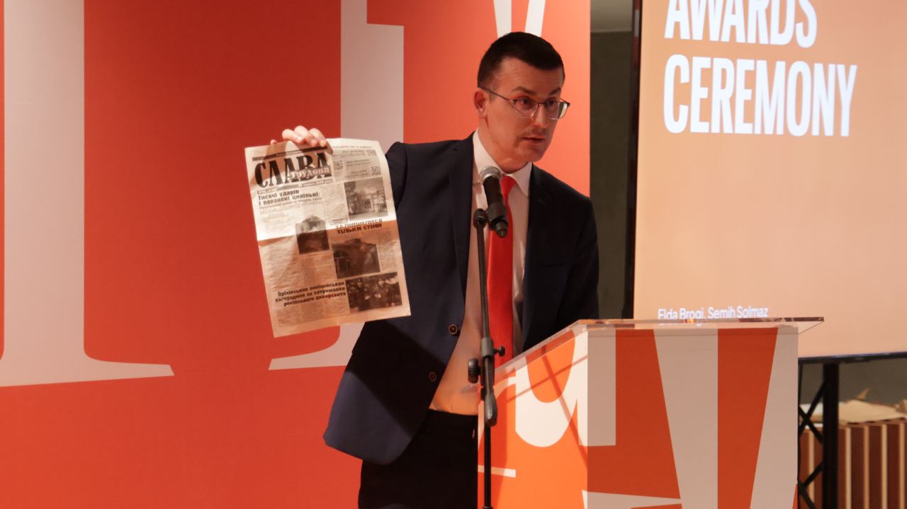 Дуже дякую за це визнання. Передусім хочу подякувати команді Центрів журналістської солідарності. Саме вони — справжні герої цієї розповіді. П’ятнадцять людей працюють по всій Україні — часто під звуки повітряних тривог, блекаутів і в умовах постійного стресу. Для багатьох журналістів під час цієї війни Центри солідарності стали чимось на кшталт гарячої лінії. Коли вам потрібне захисне спорядження, безпечне місце для роботи, порада чи підтримка — ви телефонуєте до центру. І хтось відповідає. Ця нагорода насправді належить їм. І також нашим колегам по всій Європі та світу, які висловлюють солідарність із українськими журналістами.