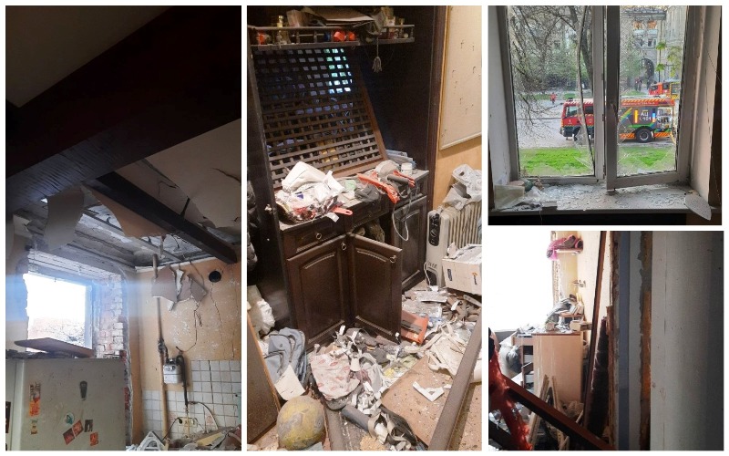 Квартира журналіста розташована в будинку, що в одному дворі зі зруйнованим. За його словами, вибуховою хвилею вибито всі вікна, двері та лутки з боку двору, який опинився в епіцентрі ураження. Значних пошкоджень зазнали меблі та внутрішнє облаштування помешкання.