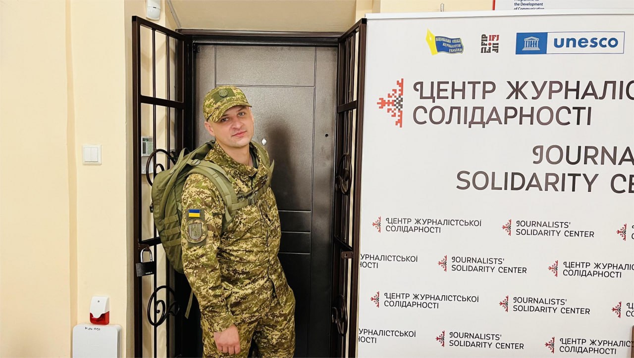 Нацгвардієць, член НСЖУ, а нині військовослужбовець Національної гвардії України, лейтенант Андрій Левків, а в мирному житті – телеоператор і фотограф, завітав до коворкінгу Івано-Франківського Центру журналістської солідарності. У 2024-му він став на захист рідної країни і несе службу в складі 50-го полку імені полковника Семена Височана.