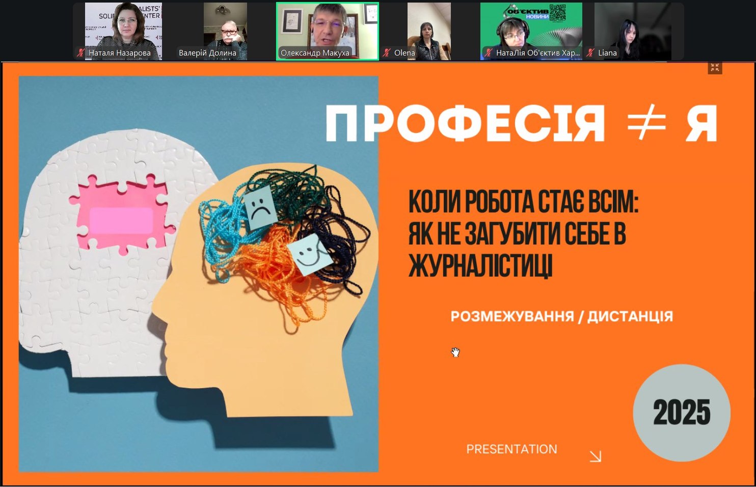 Розмова не дала готових рецептів, але створила комфортний простір для усвідомлення: журналіст може залишатися залученим і водночас мати право на особисті кордони. Бути уважним до чужого болю – і не ігнорувати власний. Розуміти, що професійна роль – це інструмент, а не сутність. І що турбота про себе – не прояв слабкості, а запорука стійкості.